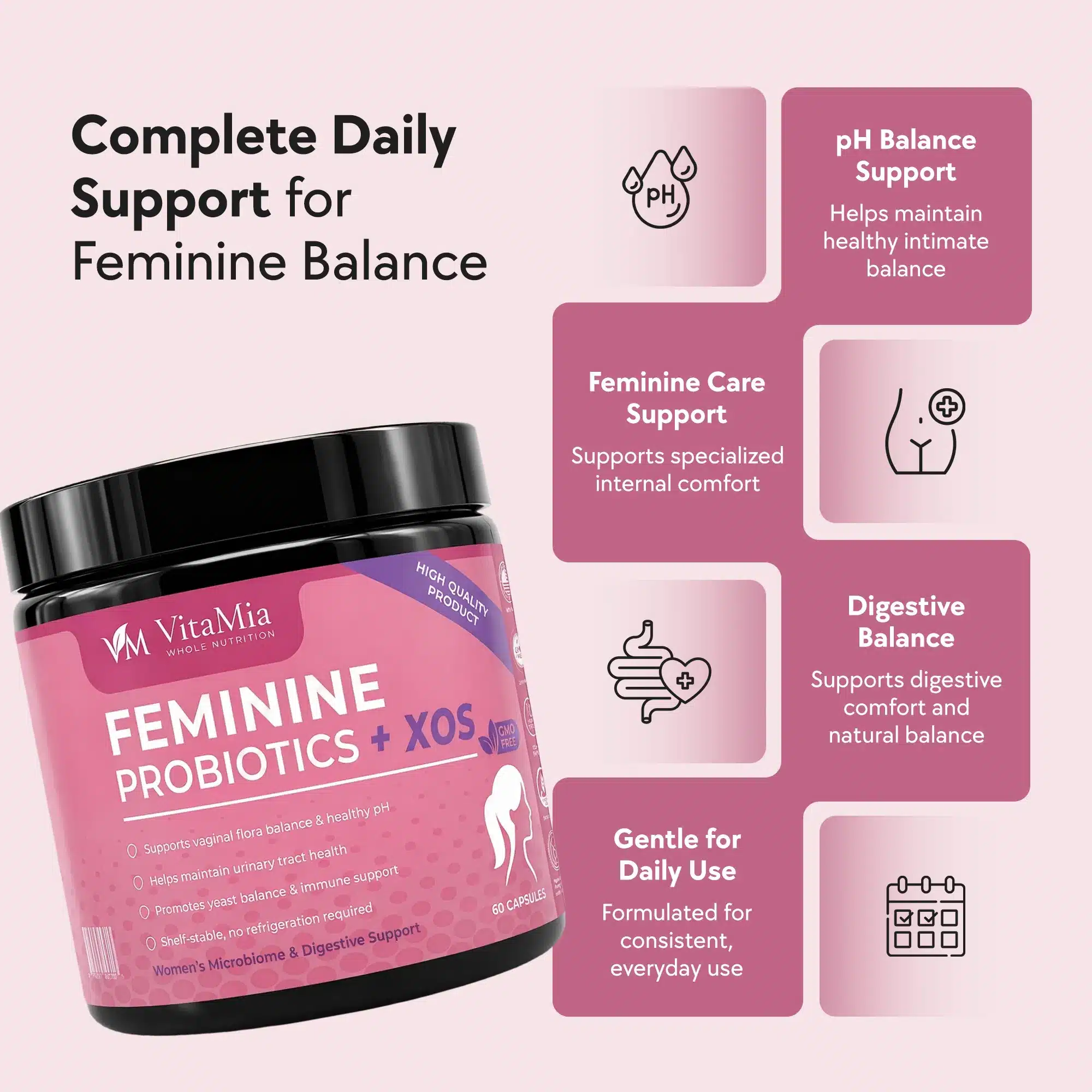 “No negative side effects at all. My gut health has improved and I feel much more regular. It’s a great product at a great price for daily feminine wellness.”