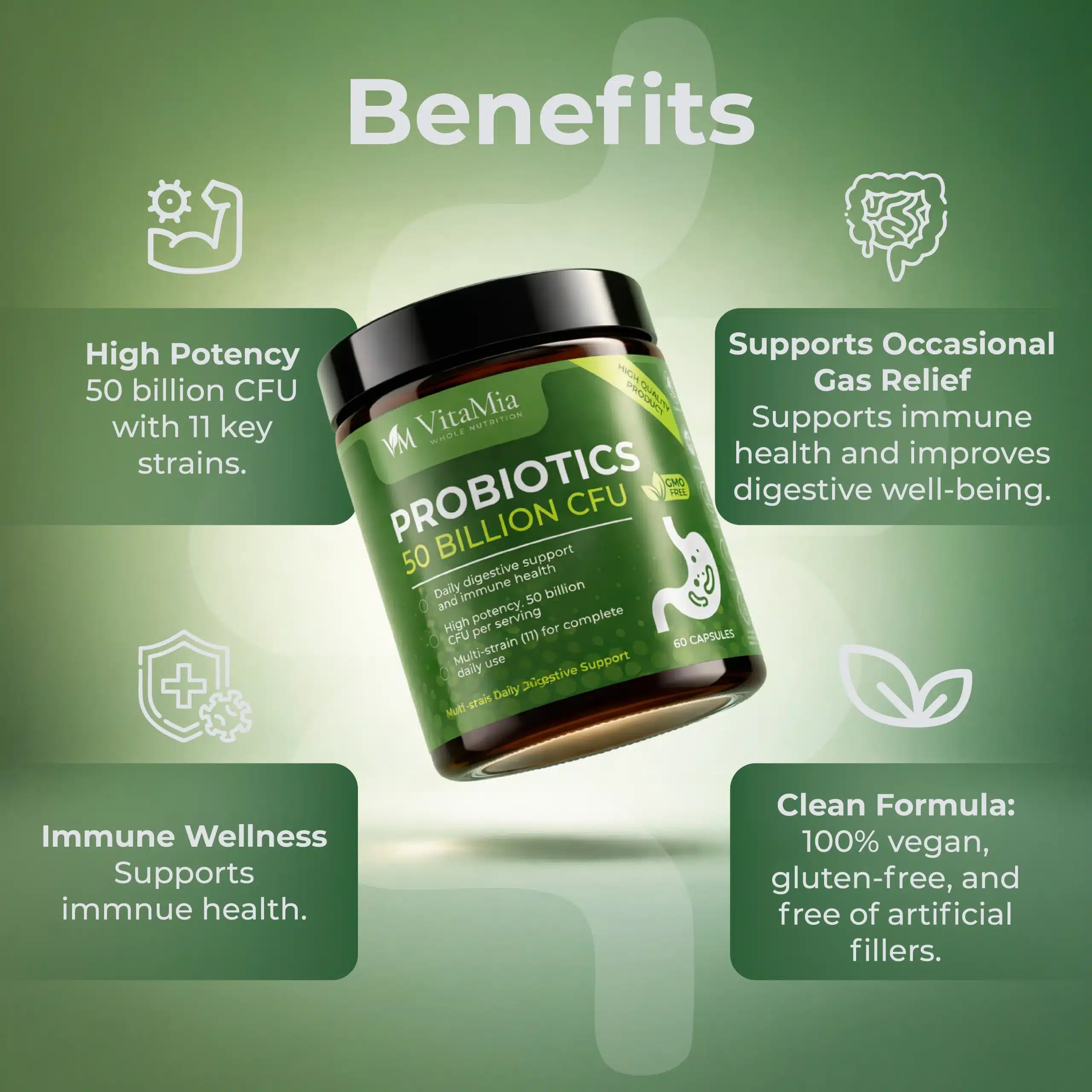 Optimize your digestive ecosystem with our advanced 50 Billion CFU formula. Engineered to be the best probiotic supplement for maximum bioavailability, our blend combines 11 high-potency strains with prebiotic fibers to restore total gut health.